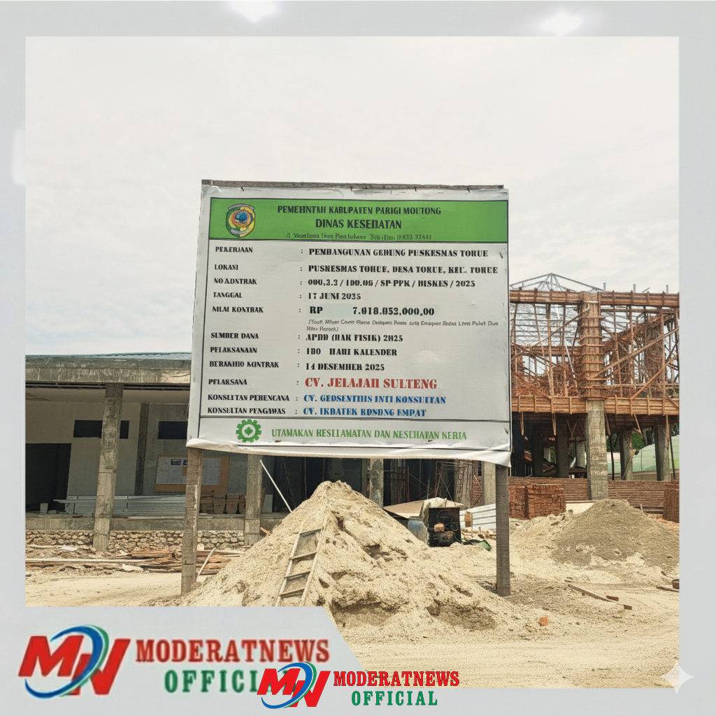 Parigi Moutong — Proyek pembangunan Gedung Puskesmas Torue di Desa Torue, Kecamatan Torue, Kabupaten Parigi Moutong, Berdasarkan hasil penelusuran dan pantauan media ini di lapangan, progres pekerjaan dinilai berjalan lambat dan berpotensi tidak selesai tepat waktu, meski nilai kontraknya mencapai miliaran rupiah.