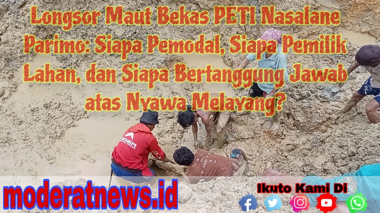 PARIGI MOUTONG, moderatnews.id – Tragedi longsor kembali menyingkap sisi gelap aktivitas Pertambangan Emas Tanpa Izin (PETI) di Kabupaten Parigi Moutong. Dua penambang dilaporkan tewas tertimbun longsoran tanah di lokasi bekas PETI Nasalane, Desa Lobu, Kecamatan Moutong, Minggu (28/12/2025) pagi.