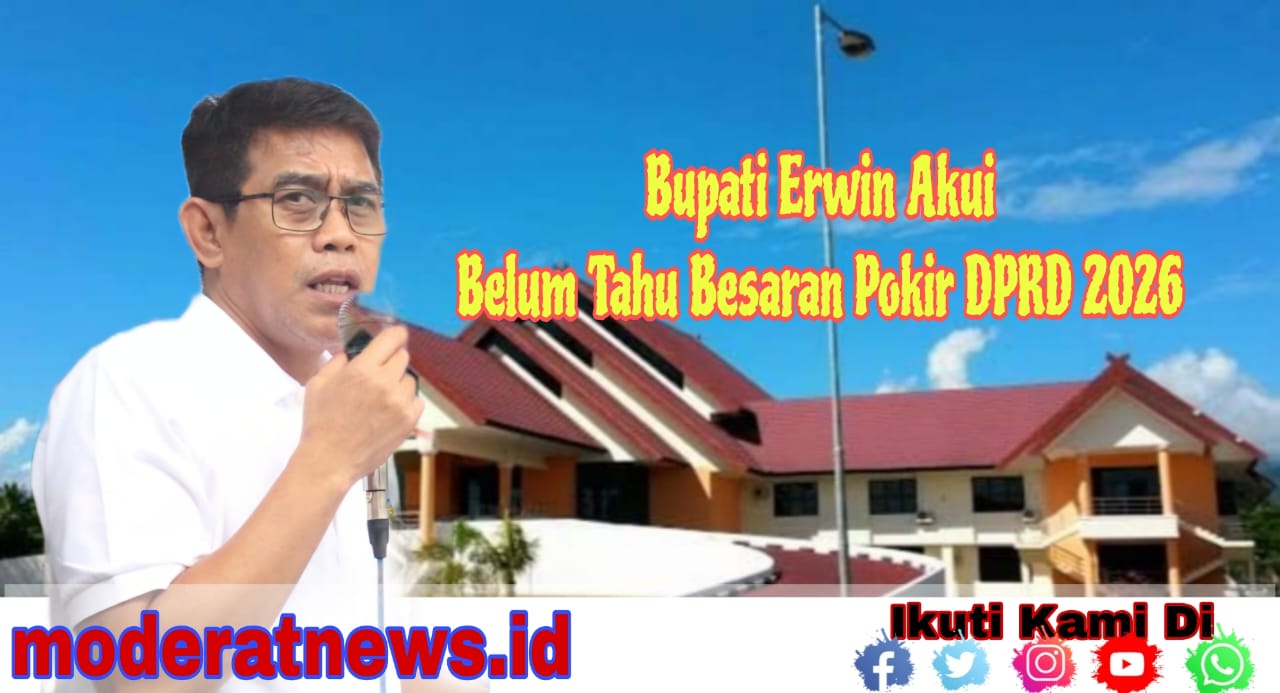 PARIGI MOUTONG, moderatnews.id – Bupati Parigi Moutong, H. Erwin Burase, mengaku belum mengetahui secara detail besaran maupun rincian anggaran Pokok-Pokok Pikiran (Pokir) DPRD Parigi Moutong dalam pembahasan APBD Tahun Anggaran 2026. Hal itu lantaran dirinya tidak mengikuti langsung rapat pembahasan dan menunjuk Wakil Bupati untuk mewakili pemerintah daerah.
