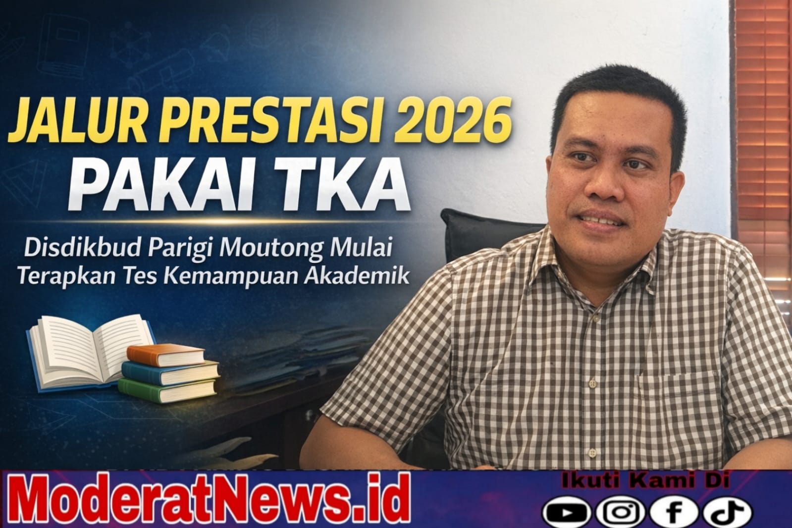 PARIGI MOUTONG, Moderatnews.id – Sistem penilaian jalur prestasi bagi siswa Sekolah Dasar (SD) dan Sekolah Menengah Pertama (SMP) di Kabupaten Parigi Moutong memasuki babak baru. Mulai tahun 2026, seleksi jalur prestasi tidak lagi hanya mengandalkan nilai rapor, tetapi diperkuat dengan Tes Kemampuan Akademik (TKA).