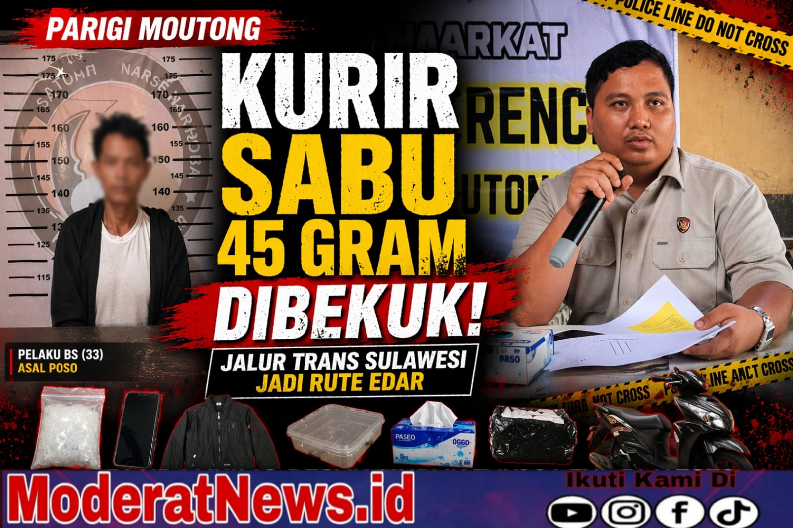 PARIGI MOUTONG, Moderatnews.id – Peredaran narkotika lintas daerah kembali terbongkar. Seorang pria asal Poso diringkus aparat saat membawa sabu seberat 45 gram di jalur Trans Sulawesi, wilayah Parigi Moutong.