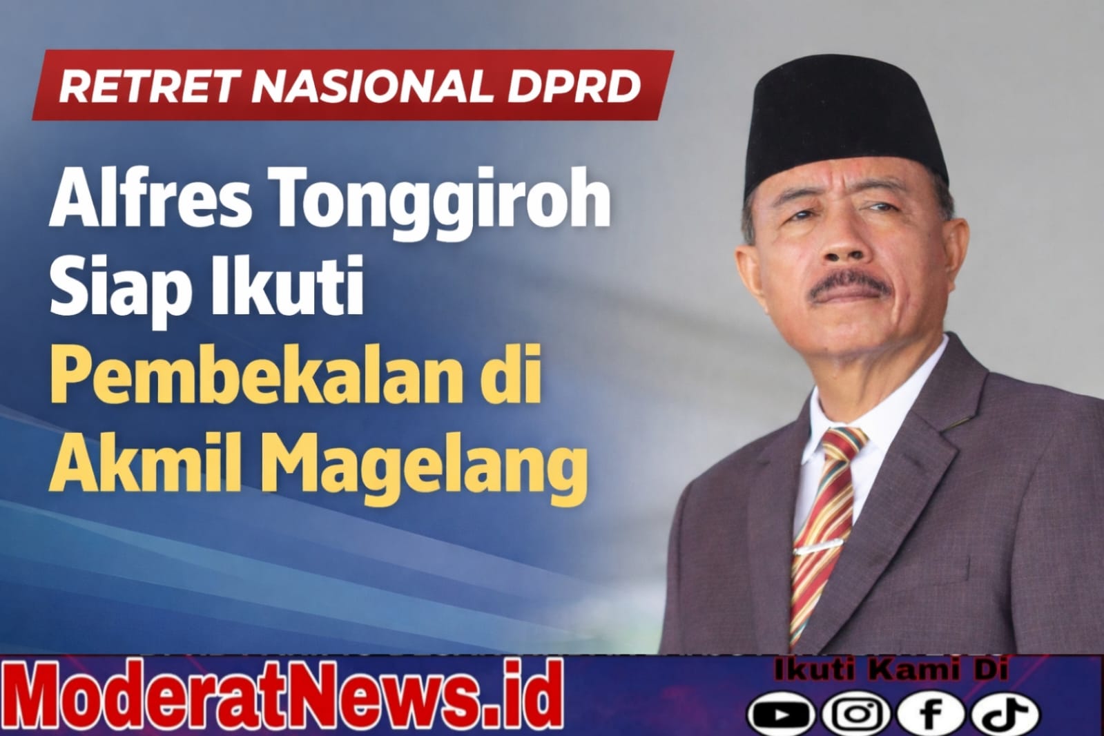 PARIGI MOUTONG, Moderatnews.id – Ketua DPRD Kabupaten Parigi Moutong, Alfres Tonggiroh, dipastikan mengikuti agenda strategis nasional bertajuk Retret Ketua DPRD se-Indonesia yang digelar di Akademi Militer (Akmil) Magelang, Jawa Tengah, pada 14–19 April 2026.